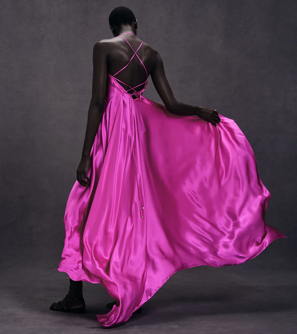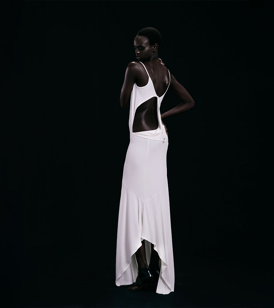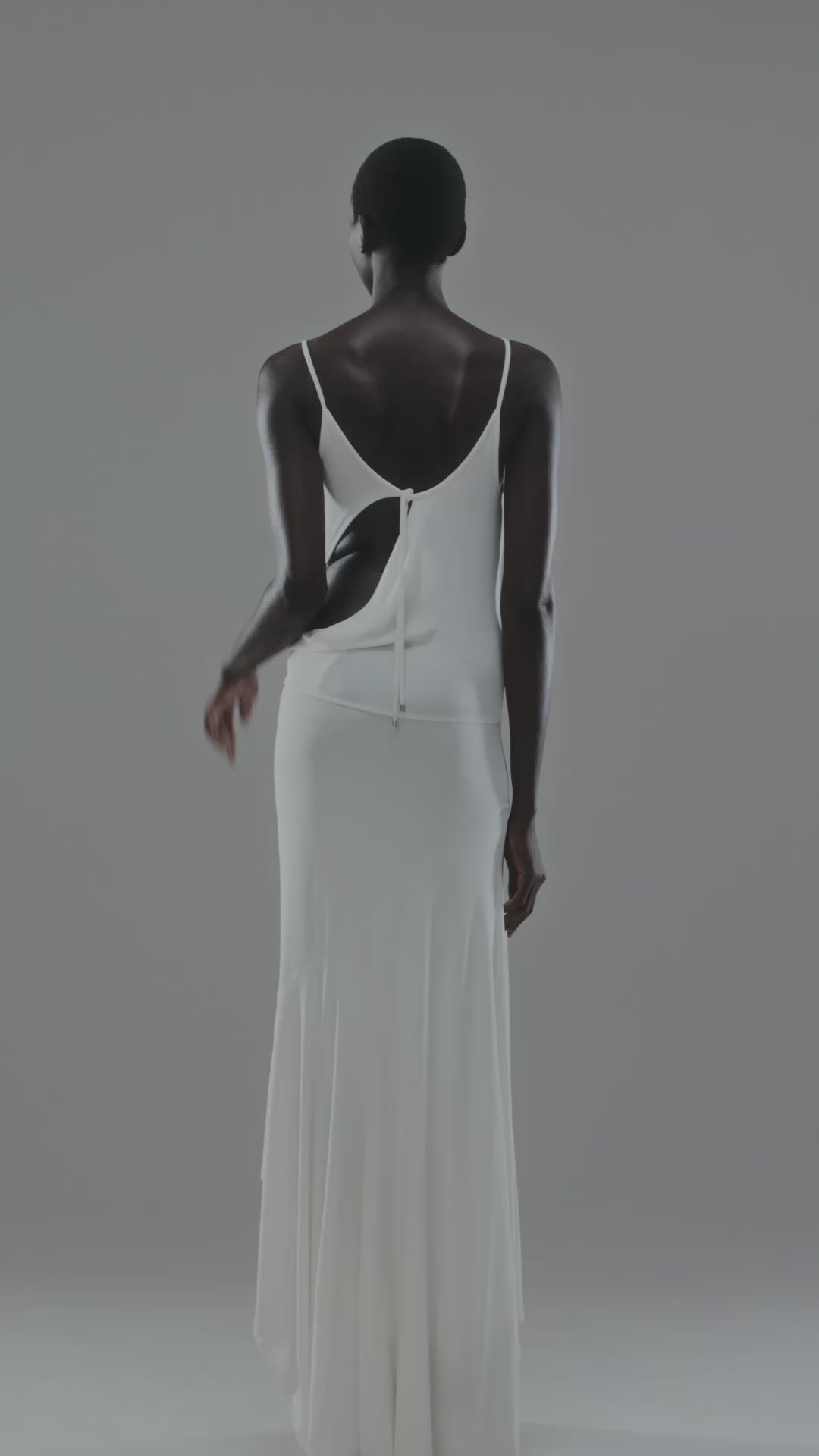 Each collection is born through an entirely Made in Italy process, where artisanal savoir faire merges with contemporary innovation. Silhouettes flow like breath; cuts are architectural yet soft with draping, a dialogue between structure and sensuality, strength and light.